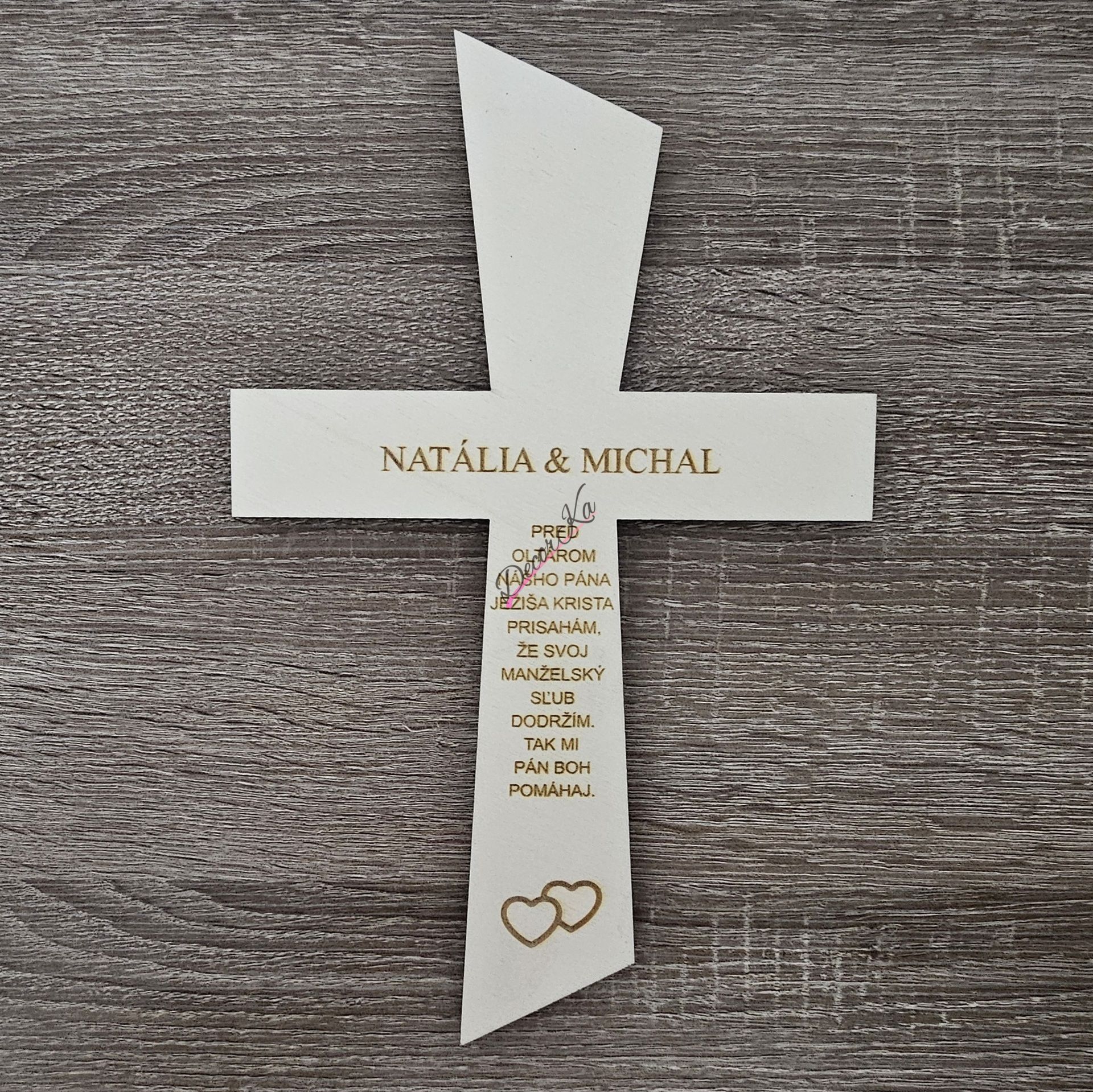 Krížik s vygravírovaným svadobným sľubom. Potrebne údaje(mená) nám prosím napíšte do poznámky.