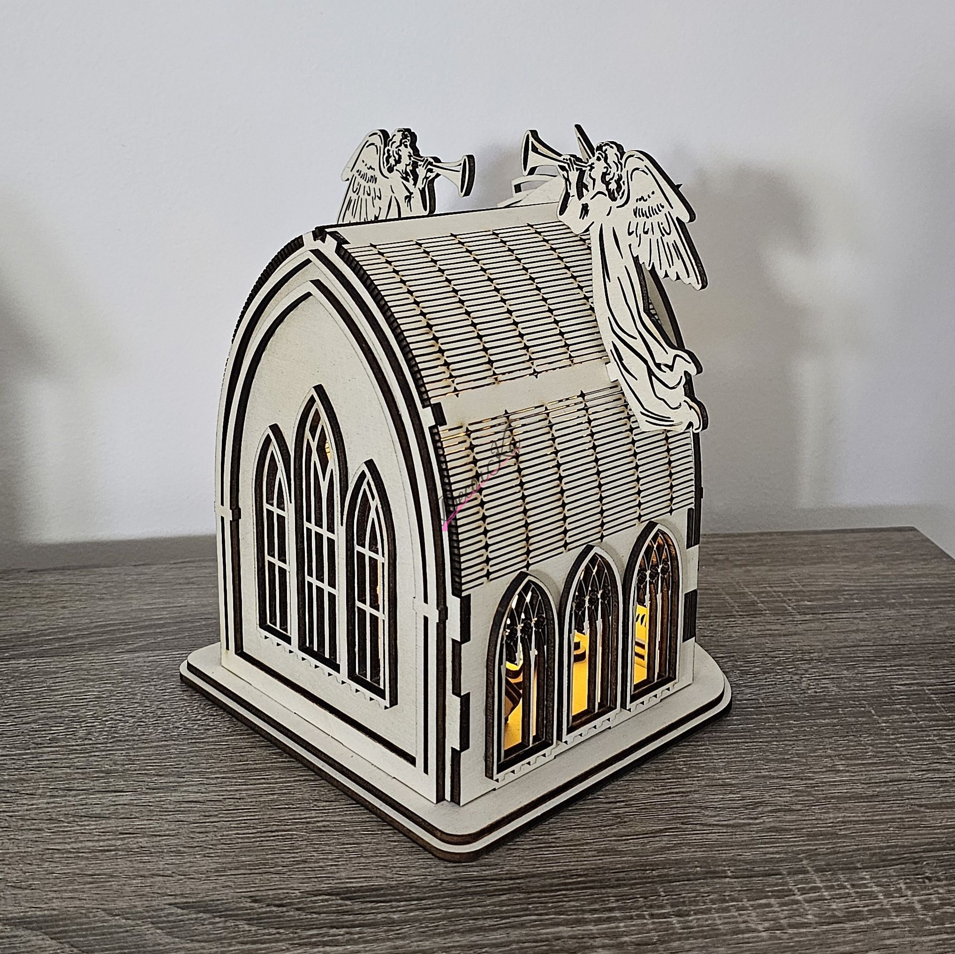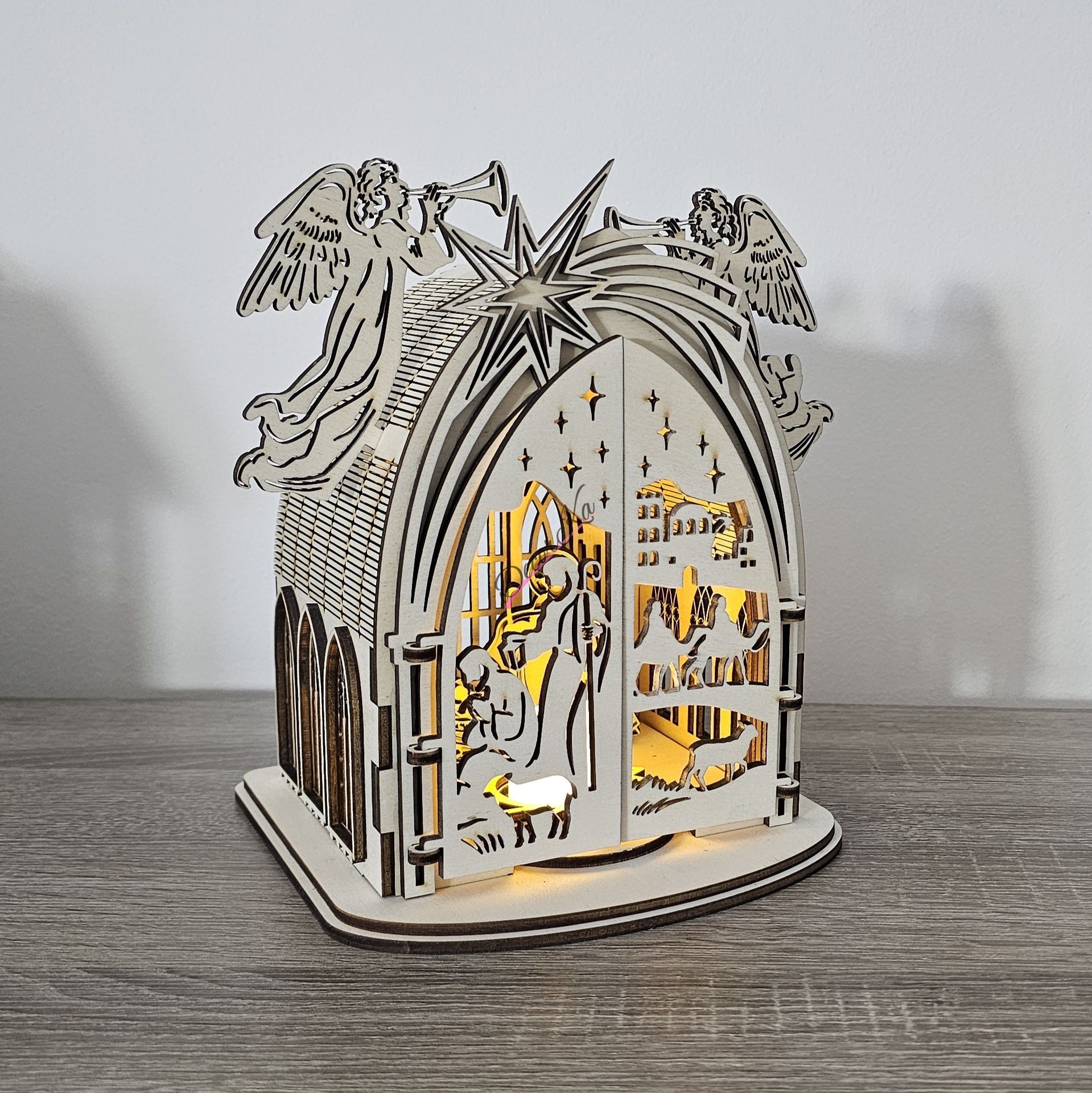 Vyrezávaný betlehém s figúrkami a LED sviečkou.