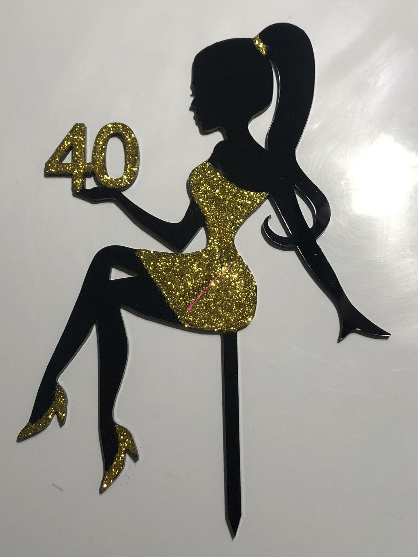Zápich sediacej dámy s číslom na ruke z čierneho akrylu. V prípade iného čisla, prosím uviesť do poznámky,