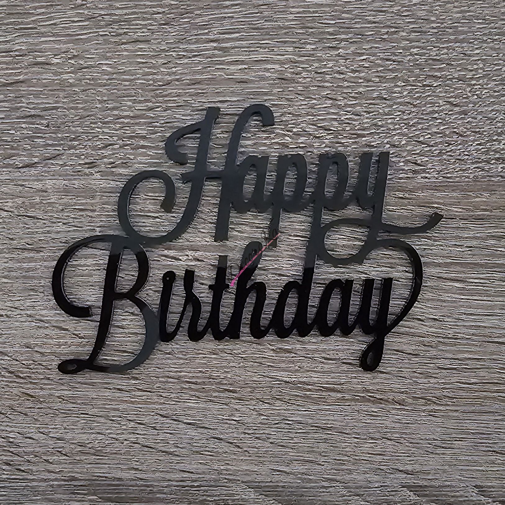 Výrez z čierneho akrylu s textom Happy Birthday