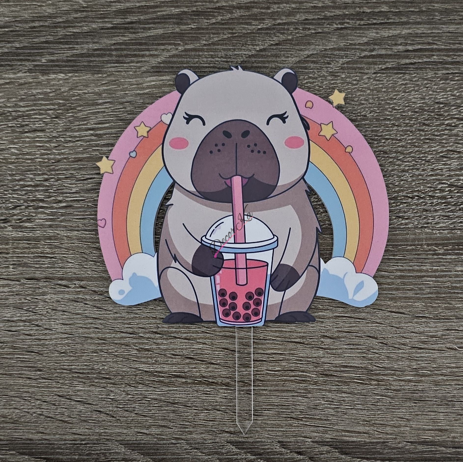 Farebný zápich capybary s dúhou.
