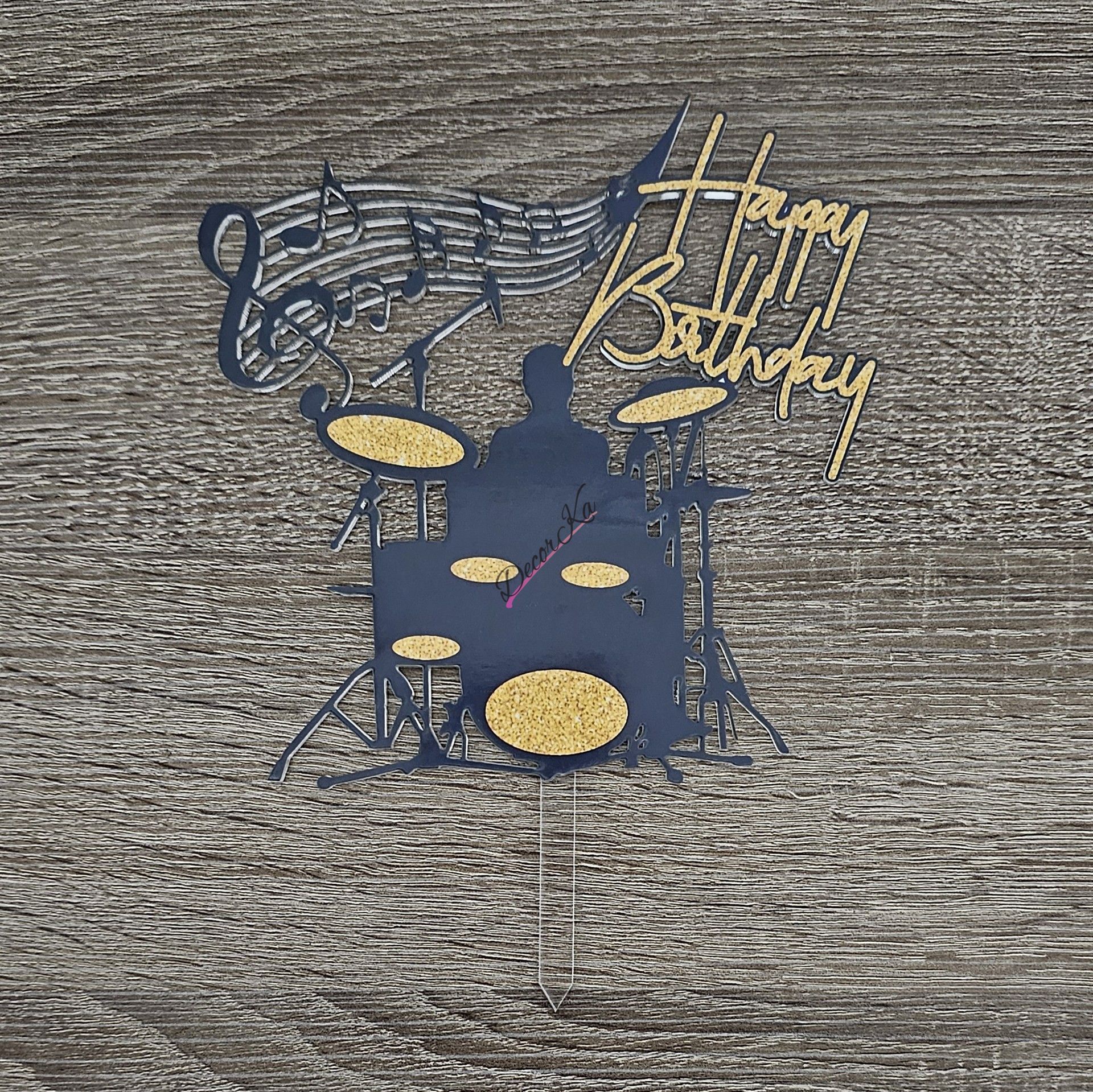 Farebný zápich bubeníka s notovou osnovou a nápisom Happy Birthday.
