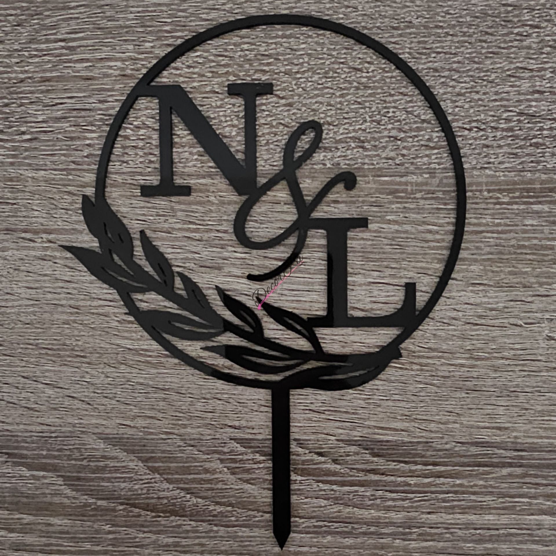 Iniciály novomanželov v kruhu,materiál čierny akryl,informáciu ohľadom písmen,resp.iniciálov novomanželov,prosím uviesť do poznámky.